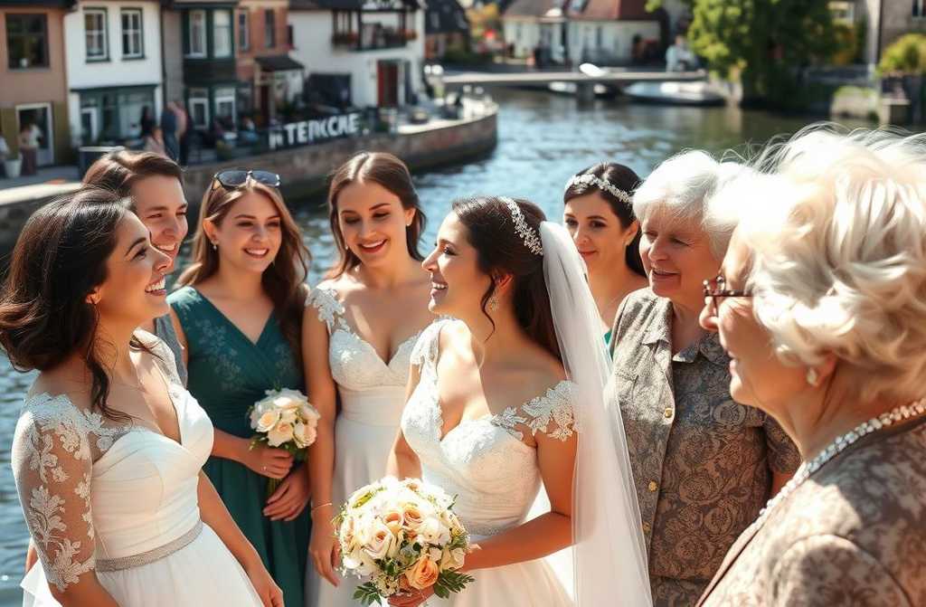Во двор вкатили машины, украшенные лентами. Из первой вышла Настя — в белом, словно лебедь. Рядом — жених, Дмитрий, статный, как молодой дуб. За ними — гости, смех, шум.
