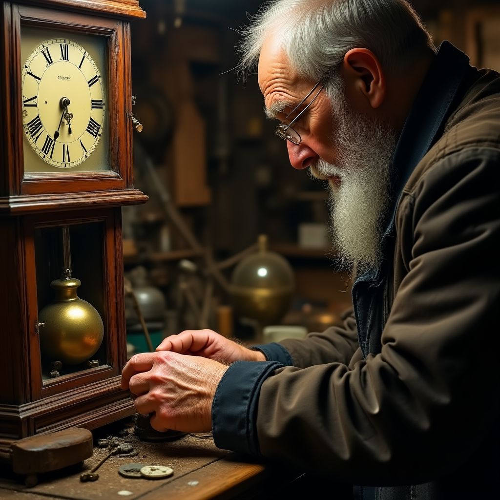 Ветхий рабочий стол, покрытый следами времени, стоял у окна, где еле заметный свет утреннего солнца скользил по стёклам. Запах пыли и старого дерева заполнял маленькую мастерскую, создавая атмосферу покоя и тайны. Часовщик Пётр, согнувшись над старыми часами, осторожно вставлял последнее колесико на своё место. Было тихо, только тиканье часов нарушало безмолвие.