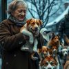 В последнем ряду сидела женщина, её глаза были полны усталости и непроизнесённых слов. Она носила простое серое пальто, которое явно видало лучшие времена. Её волосы были собраны в небрежный пучок, а руки нервно теребили платок. Казалось, она была частью этого зала — такой же старой и потрёпанной жизнью.