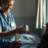 В последнем ряду сидела женщина, её глаза были полны усталости и непроизнесённых слов. Она носила простое серое пальто, которое явно видало лучшие времена. Её волосы были собраны в небрежный пучок, а руки нервно теребили платок. Казалось, она была частью этого зала — такой же старой и потрёпанной жизнью.