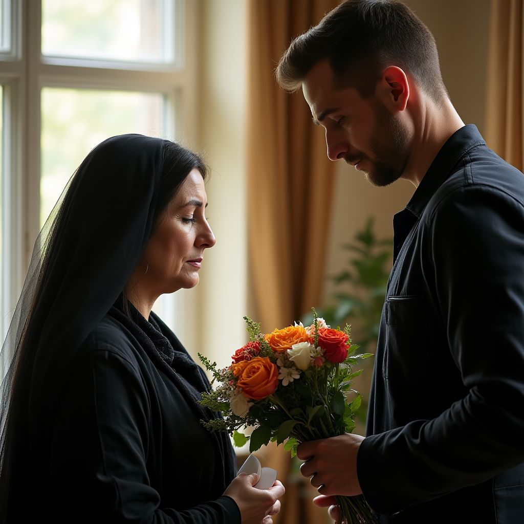 Вдова молча наблюдала за происходящим, когда к ней подошёл Алексей — лучший друг её покойного мужа. Невысокий мужчина с добродушным лицом и лёгкой сутулостью в плечах выглядел немного потерянным среди этой торжественной обстановки. Он был одет в старый серый костюм, который выглядел так же уставшим от жизни, как и сам его хозяин.
