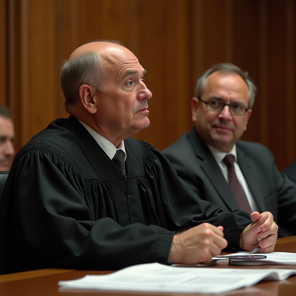 В зале суда стояла тяжелая тишина, нарушаемая лишь шумом дождя за окнами. Серое небо нависало над городом, словно предвещая нечто мрачное. Мягкий свет ламп подчеркивал каждую деталь деревянной отделки зала, создавая атмосферу старинного театра.