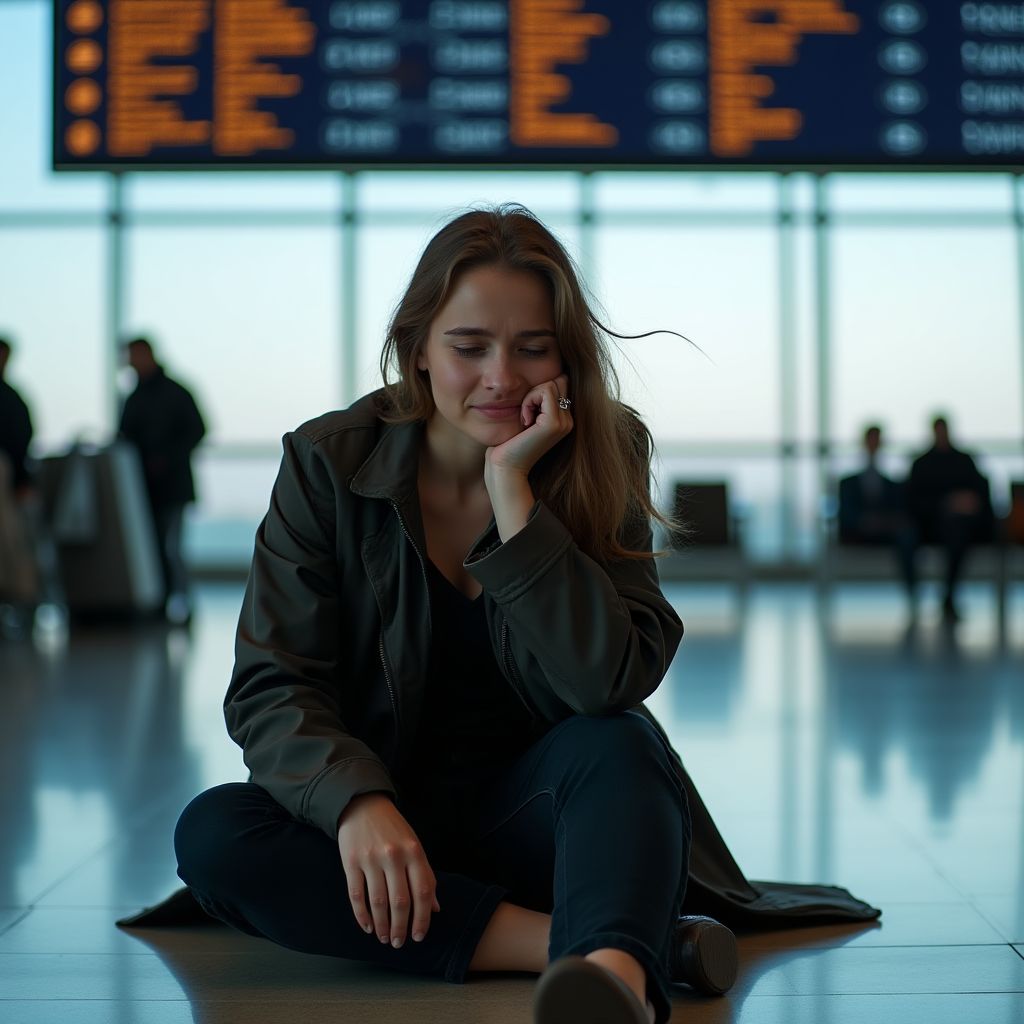 Девушка выдавила слабую улыбку: «Я просто… опоздала на рейс.» Он понимающе кивнул и предложил помощь.