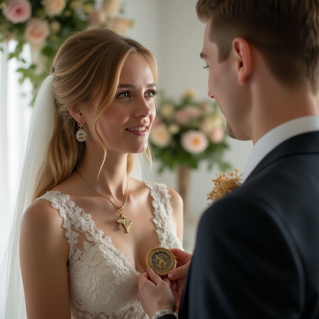 Невеста крепче держала медальон ощущая тепло его сердца через холод металла благословленного материнским духом любви ждущим часами той самой встречи вознаграждения семейных устоев потерянных во времени…