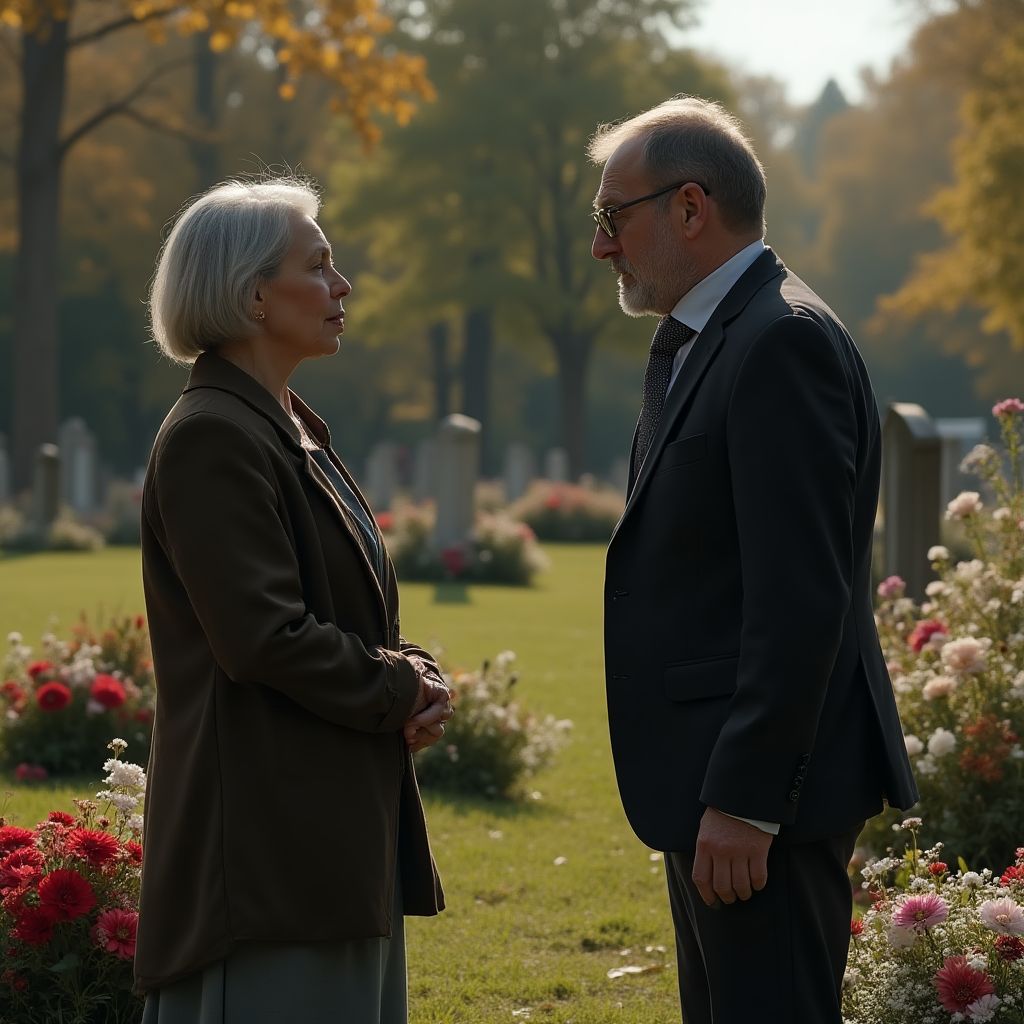 Когда церемония закончилась и гости начали расходиться, она оставалась на месте, словно прикованная к земле. Вокруг неё медленно редели ряды людей, пока не осталось лишь несколько самых близких друзей покойного. Один из них, невысокий мужчина средних лет с усталым лицом и седыми висками, подошёл ближе.