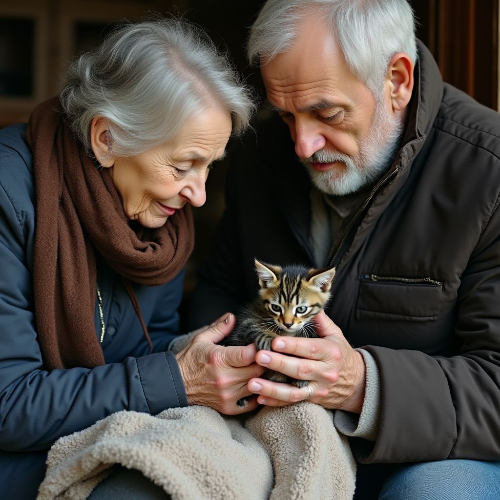 В голове Марии крутились привычные холодные мысли: счета, очереди, поликлиника, автобус до рынка, слова дочери, которой не было. Она думала о пустой квартире, где висела фотография свадьбы у ЗАГСа — яркая, но выцветшая. «Нам нужен кот, Павел», — шептала она себе, как молитву, представляя тёплый комочек на коленях в холодную ночь. Павел слушал, считая шаги до выхода, считая деньги в кармане: пенсия, сдача бутылок, улыбка, которую они бережно прятали от прохожих. Им нужна была тишина, простая и настоящая, и они пришли за маленьким живым согревателем.
