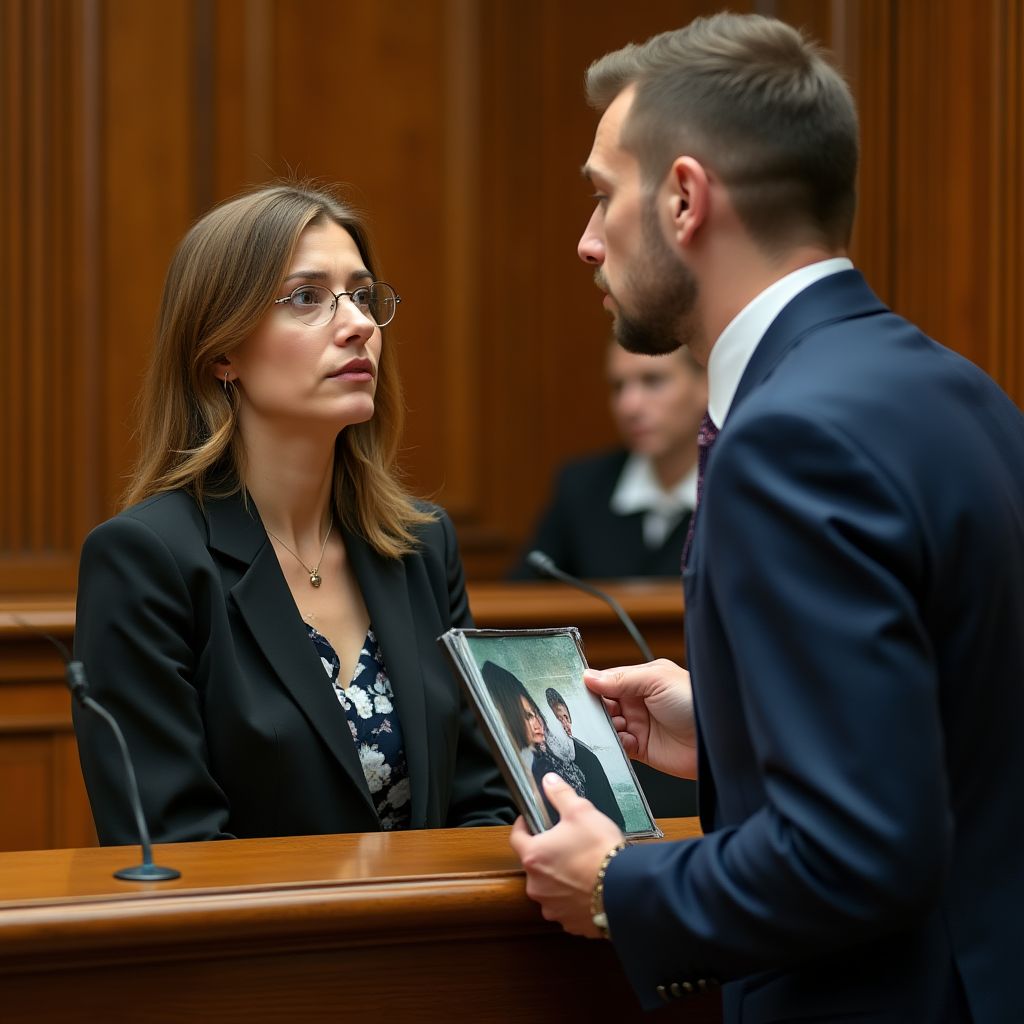 Она сделала шаг вперёд, пальцы потянулись к фотографии, и в этот момент воздух в зале казался плотнее обычного; кто-то выдохнул так громко, что послышалось. Её дыхание стало прерывистым, ладони влажными, а свет ламп накаливал лицо и выцарапывал тени под глазами. «Скажите правду», — потребовал прокурор, глядя ей в глаза, и все почувствовали, как на кону стоит не просто дело, а человеческая судьба.