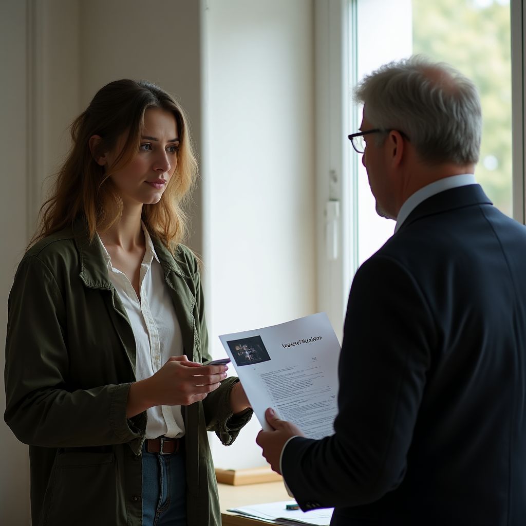 Она стояла у порога, слыша, как её собственное дыхание отзывается эхом в коридоре, и комната казалась почти свинцовой от напряжения. Свет лампы резал воздух, тени от бумаги ложились на ладони; она ощущала на губах вкус металла — смесь страха и решимости. «Пожалуйста, присаживайтесь», — произнёс наконец тот, кто представился Дмитрием Ивановичем, голос его был тих, но с оттенком усталой строгости. «Я пришла за работой», — повторила она, и в её голосе слышалось столько памяти, что он отшатнулся.