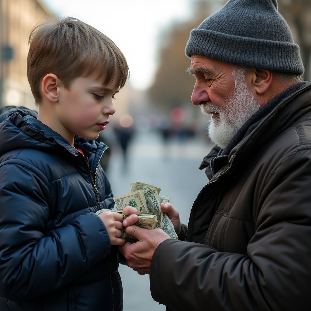 Он встал прямо, руки всё ещё дрожали, и для себя произнёс: «Мама всегда говорила — помогай, даже если мало». Мысли его разрастались, как тёплые корни: «Если мама узнает, она улыбнётся. А если нет — я всё равно сделал правильно». Он вспомнил, как мама уходила на работу в роддом и возвращалась с запахом мыла и чужой радости, как в её сумке был всегда пакет с едой для соседки. Решение было принято тихо, но окончательно: он не вернётся к карманам, не станет искать сдачу, он дал и не жалел.