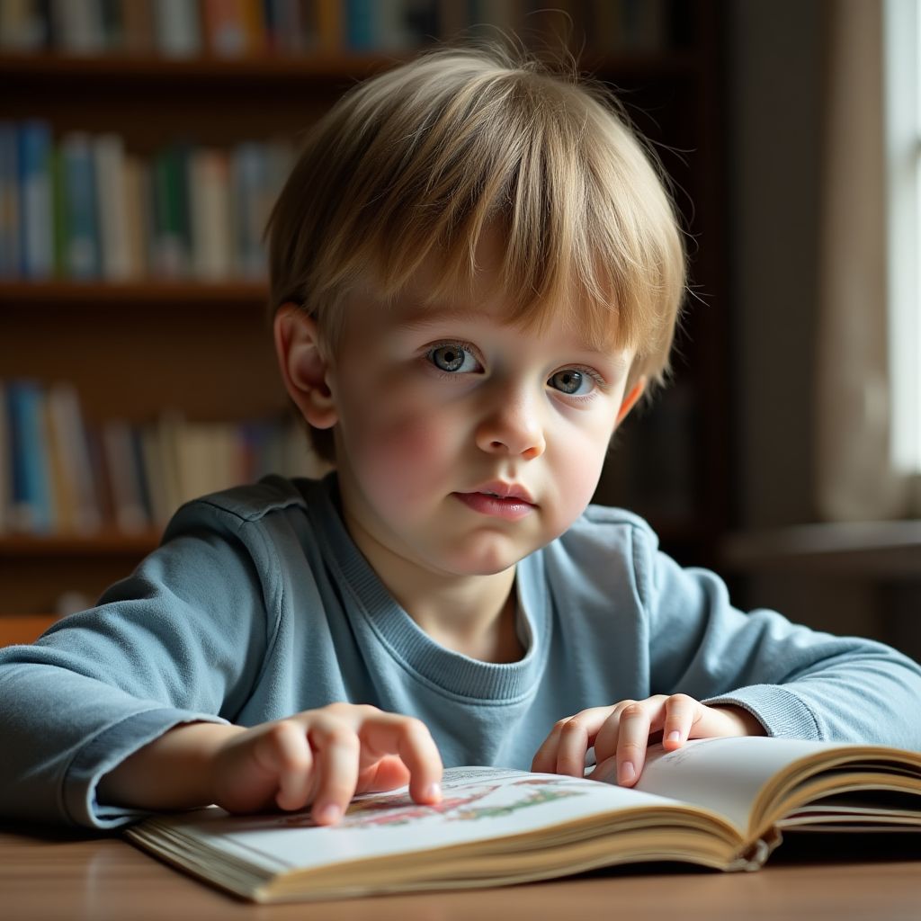Он сидел у дальнего окна, и лампа бросала на его лицо тёплые пятна света. Мальчик был худой, с запавшими щеками и большими тёмными глазами, в старой куртке, слишком широкой на плечах, с дырявыми рукавицами в кармане. Осанка его была прямая, будто он пытался казаться старше; губы — бледные от холода и усталости. Люди в библиотеке шептались, глядя на него как на тихую проблему.
