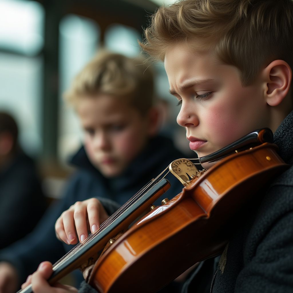 Вдруг знакомая мелодия прорезала гул вокзала. «Что это за аккорд?» — спросил прохожий, замедлив шаг. «Слышите? Как будто из другого мира», — ответила женщина с корзиной. «Он играет», — произнёс мужчина в рабочей форме, указывая на молодого парня у колонны. «Он кто вообще?» — спросил другой, с усмешкой, глядя на грязные рукавицы музыканта.