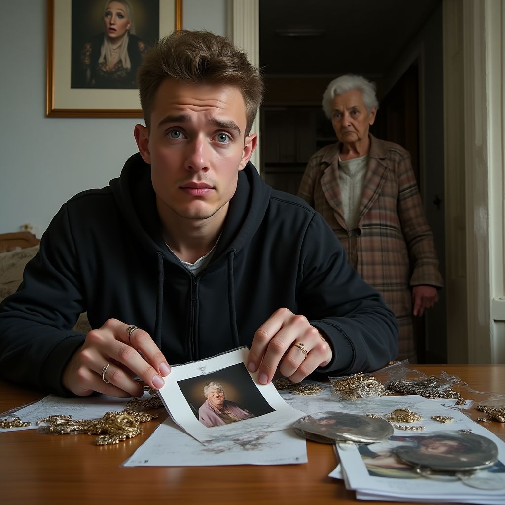 Он уже перебрал шкатулки и кошельки, когда глаз зацепился за рамку на столе; на ней была женщина в простом платье с нежной улыбкой — его сердце замерло. «Мама?» — выдохнул он, не осмеливаясь подойти ближе, словно прикосновение могло развеять иллюзию. Стук в подъезде заставил его вздрогнуть: «Эй, все ли в порядке?» — крикнул прохожий, и голос, полный праздного любопытства, донёсся через стену.