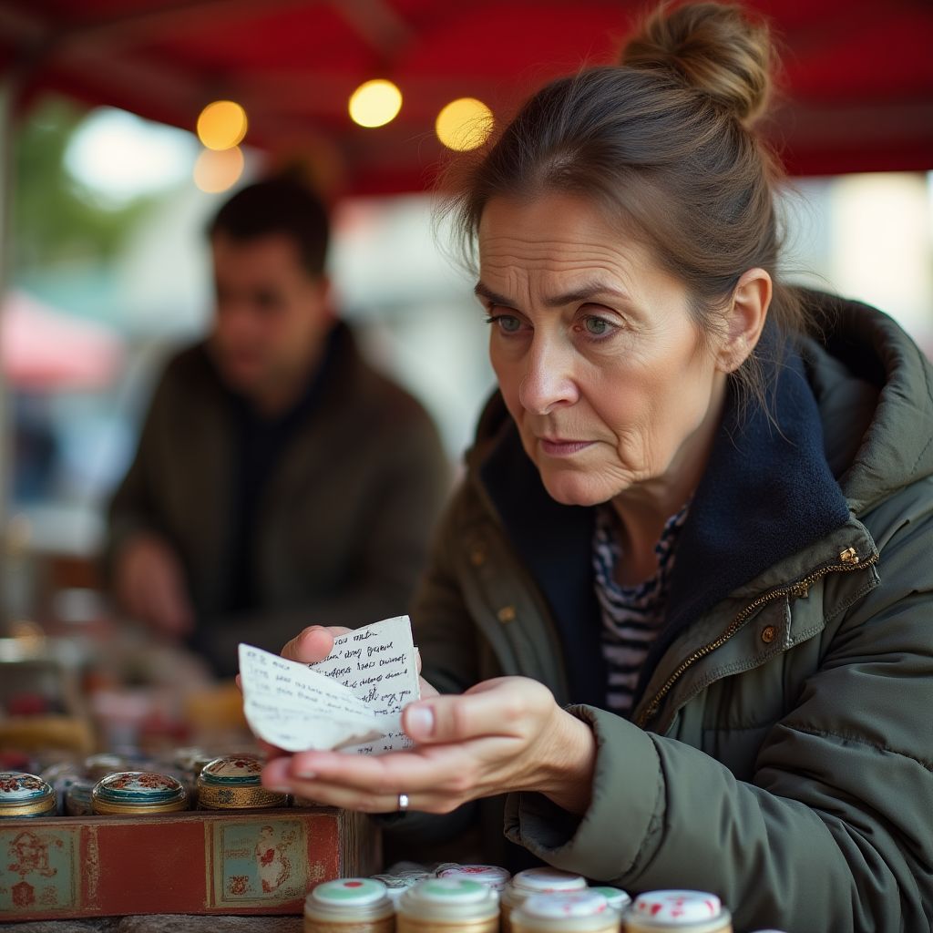 Шкатулка была легче, чем казалась; металл в её руках был тёплым и слегка липким от старого лака. Лена села на низкий бордюр, пока продавцы начали убирать прилавки, и осторожно открыла крышку: внутри лежал сложенный лист бумаги, пожелтевший от времени, и тонкий кулон с гравировкой, покрытый пылью. «Что это такое?» — услышала она чей‑то голос. «Кто оставляет письма?» — удивлённо произнёс мальчик, проходивший мимо. Она почувствовала, как дыхание замерло в груди; вокруг суета, люди продолжают говорить, а для неё мир сузился до двух строк чернил.
