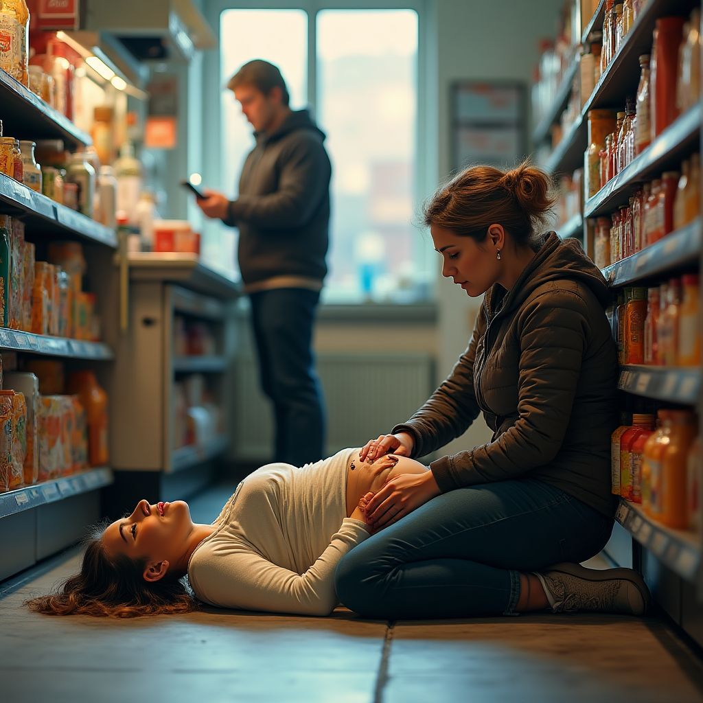 Неожиданно, когда женщина упала в обморок, весь магазин притих, словно дыхание остановилось. Подергивающиеся губы кассира отчаянно набирали номер скорой помощи, а окружающие с напряжением следили за каждой секундой. Тело женщины безжизненно лежало на холодном полу, а её руки бессильно сжимали сумку с лекарствами. «Держитесь, всё будет хорошо!» — прохрипел молодой мужчина, резко подхватив её под локти. Одежда дрожала от холодного воздуха, наполнявшего помещение сквозняком, смешанным с запахом мёда и медикаментов. Сердце казалось, застыла — настолько все присутствующие чувствовали тяжесть момента.