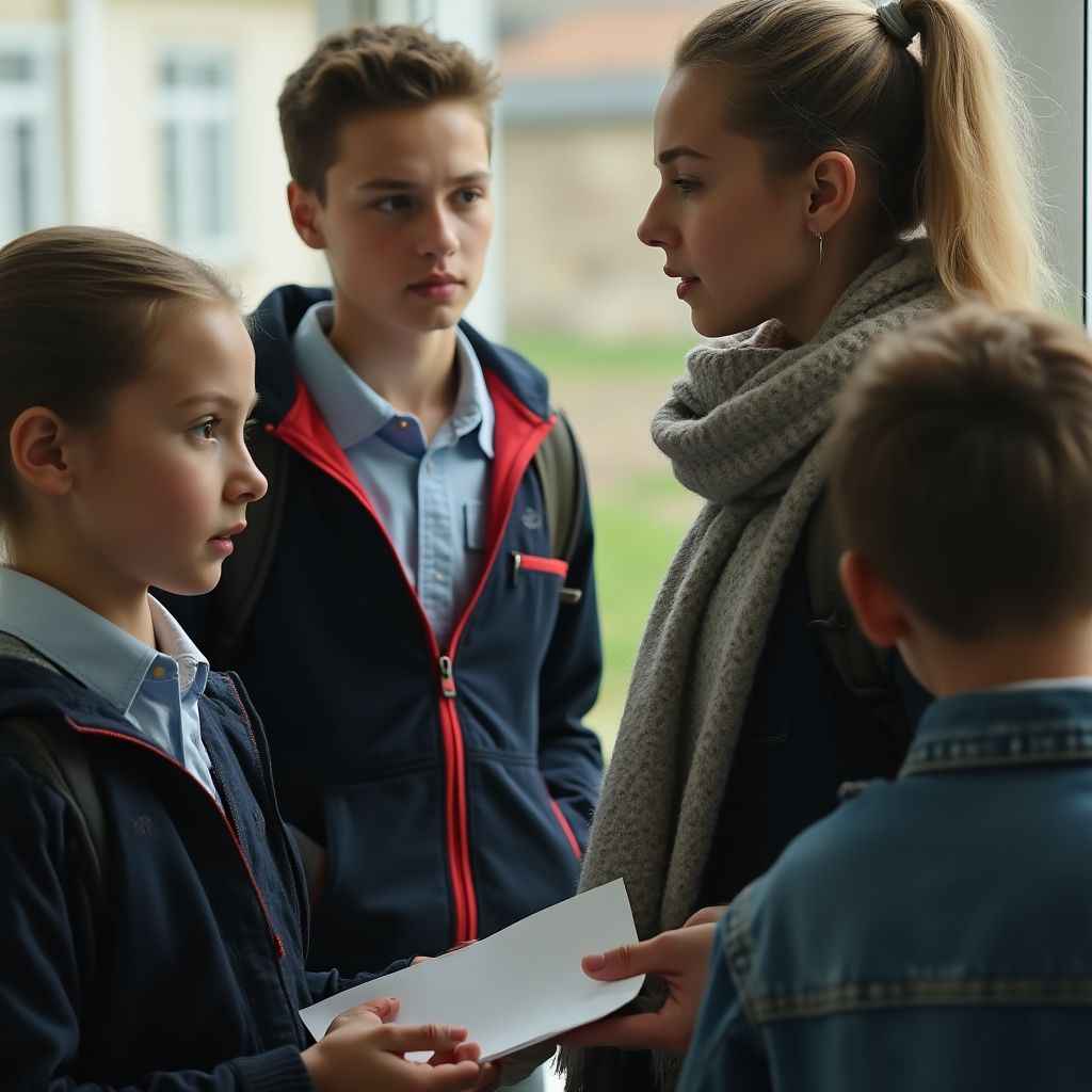 Шум детских голосов обрушился снова, но теперь они были уже не такими бесшабашными — в воздухе висело недоверие и готовность к разоблачению. Учительница прижала к груди сложенный лист, пальцы её дрожали, а сердцебиение слышалось в ушах всем вокруг; кто‑то из родителей шагнул вперёд, кто‑то отступил, и на лицах появилось то, что трудно назвать иначе, чем страх правды. «Что там?» — пробормотал директор, подходя ближе и глядя в бумагу с смешанным выражением удивления и опасения. «Откройте», — прошептала одна из мам, и школа затихла вновь, словно слушая приговор.