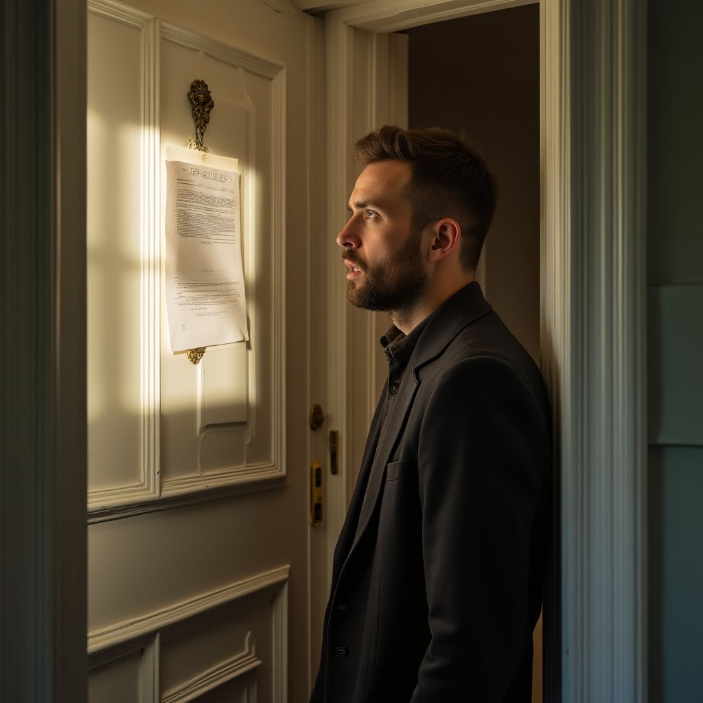Мысли не давали покоя: «Что же там могло быть? Почему именно сейчас? Почему это письмо висит на моей двери?». Тревога перемешивалась с надеждой, сердце билось быстро, словно предупреждая о приближающемся переломе. Было чувство, что всё изменится уже в эту минуту, что судьба приготовила ему испытание — или спасение. Он медленно поднял руку, чтобы сорвать конверт, не зная, к каким открытиям это приведёт.