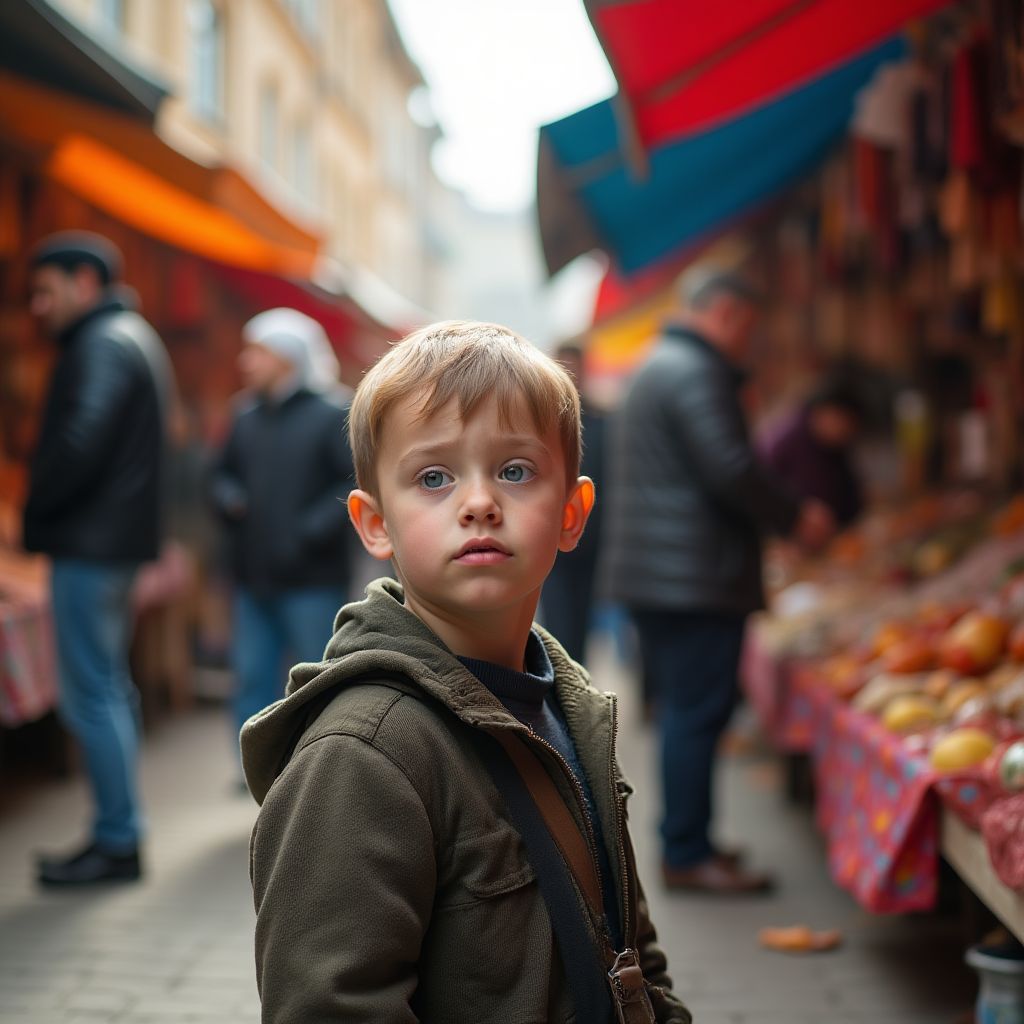 Мысли Сергея были спутаны — он не мог избавиться от чувства потери и вины. Вчерашний день оставил в его сердце пустоту: его маленькая сестрёнка пропала где-то в толпе рынка. «Где она? Как могла исчезнуть так быстро?» — терзали его мысли. Вокруг люди проходили мимо, не замечая его отчаянного взгляда, и этот контраст только усугублял настроение. Несмотря на своё обездоленное положение, он не собирался сдаваться, ведь любовь к ребёнку была сильнее всего.