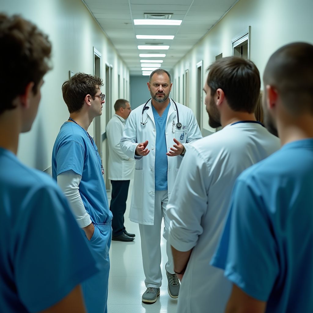 Он стоял в середине группы: молодой ординатор Сергей, ростом чуть выше среднего, с коротко постриженной тёмной бородой и глазом, в котором светилась усталость. Его халат был чист, но воротник мятый, ботинки поношены — вид у него был не из тех, что сахаром усыпают пространство. По манере говорить — аккуратно, почти тихо; голос казался зажатым от ночной усталости и постоянного сравнения своего положения с чужими счетами и чеками. Он пришёл сюда не за славой: сестра в роддоме, маленький брат на лечении, и долг за коммуналку, который гнулся, как старое железо — вся его жизнь была просчитана по копейкам.