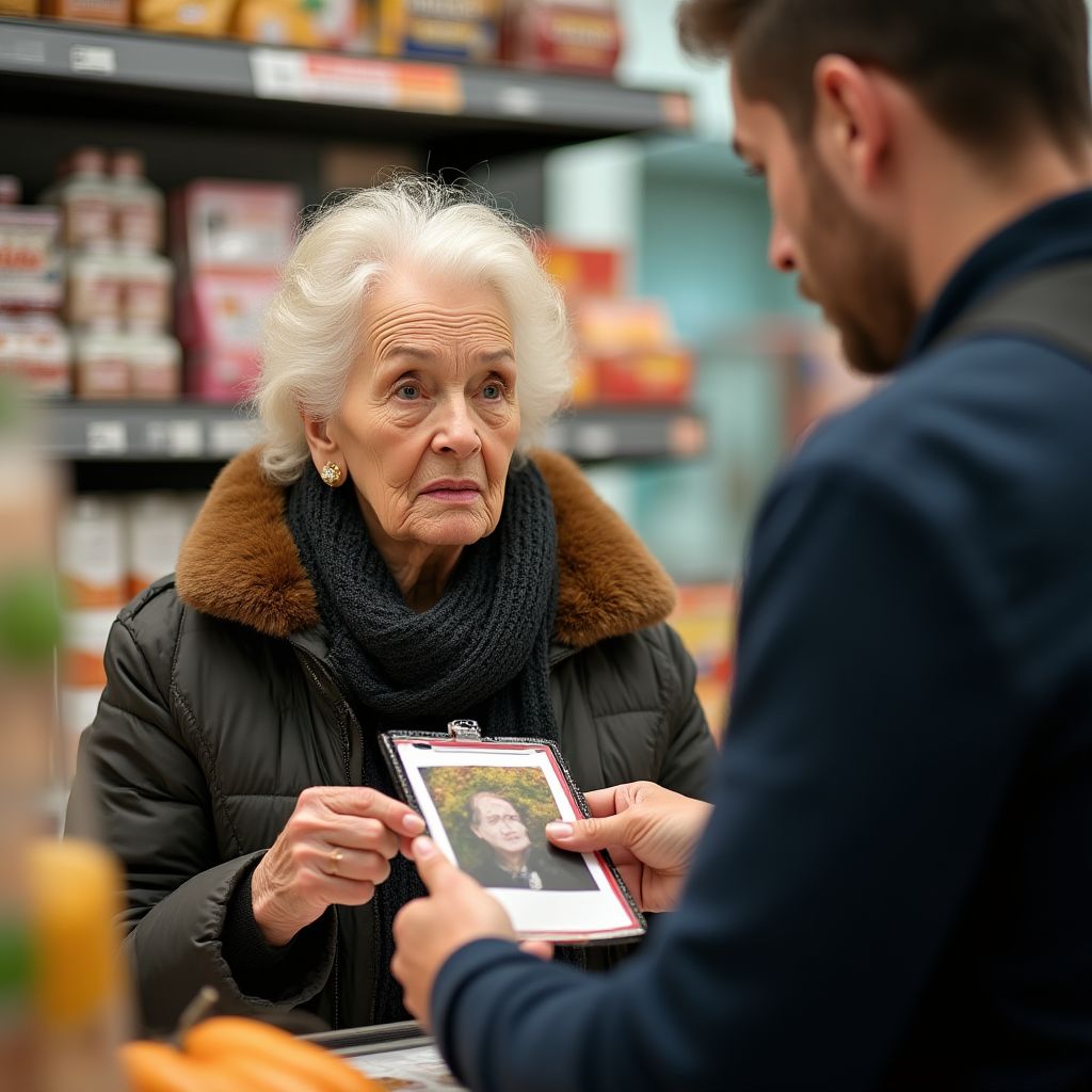 Все в очереди затаили дыхание. На снимке был молодой мужчина в форме ветерана, с гордой осанкой и глубоким взглядом. «Это мой сын,» — тихо произнесла старушка, голос дрогнул от волнения. На глазах у многих появились слёзы, и по залу разошёлся шёпот: «Неужели это правда?» — спрашивал один из покупателей. «А как можно отказать ей теперь?» — вздыхала женщина с ребёнком на руках. Работник кассы взял фотографию, почувствовав, как холод пролился по позвоночнику.