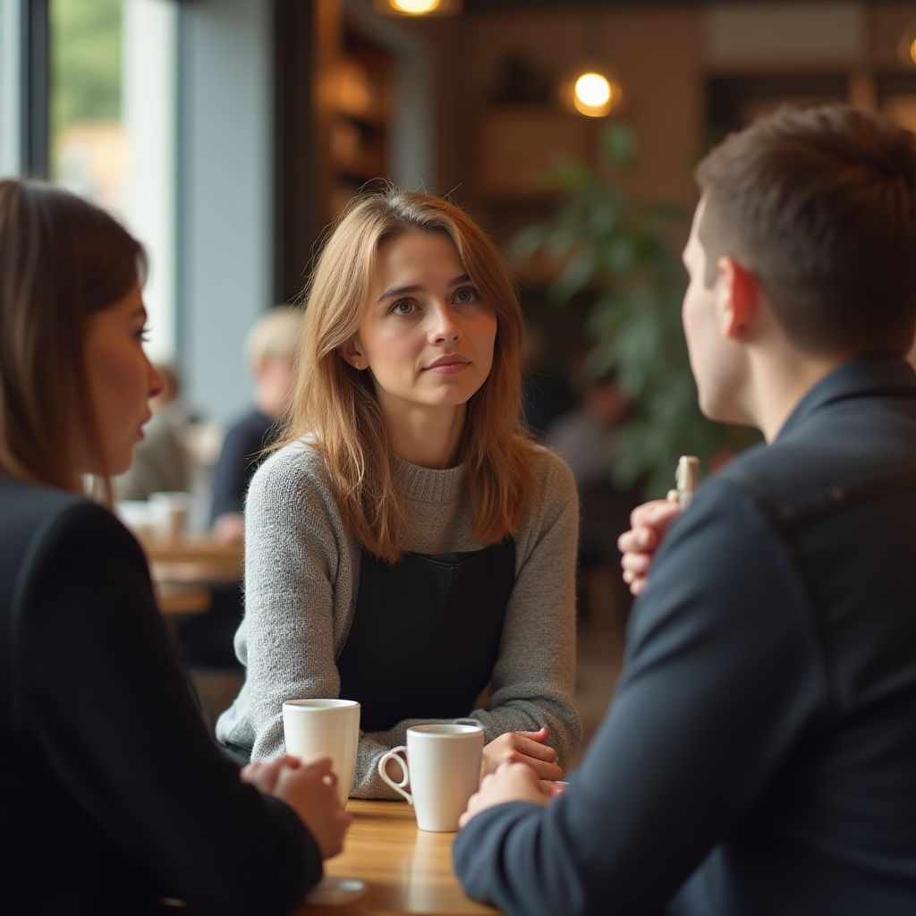 В этот момент за соседним столиком заговорила пара — женщина средних лет с усталым взглядом и мужчина с резкими чертами лица. Их разговор был тихим, почти шёпотом, но в монотонной суете кафе каждое слово было слышно отчетливо. «Если они узнают, что я уехала, он исчезнет навсегда», — сказала женщина, голос дрожал. Мужчина ответил хрипло: «Нельзя так просто отпустить. Всё разрушится, если правда выйдет наружу».