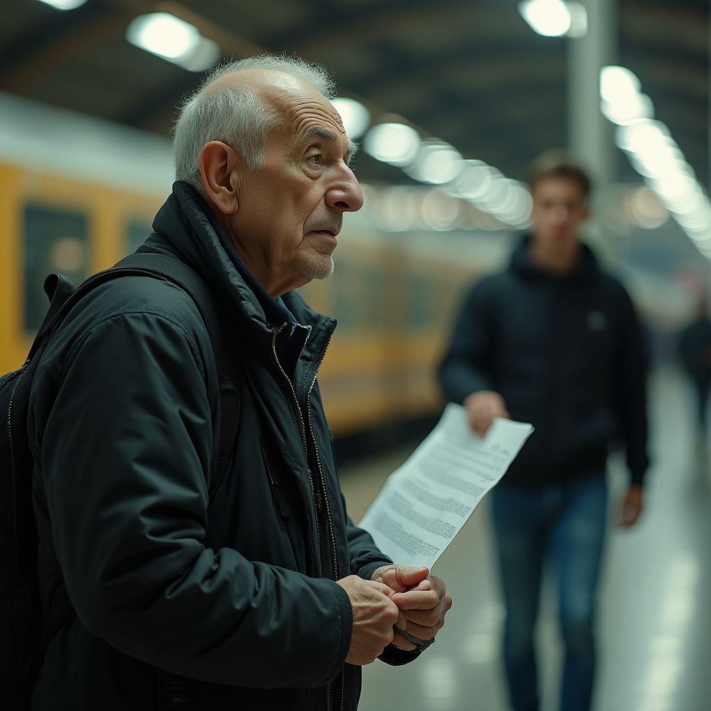 Старик глубоко вздохнул, сердце билось как барабан, переливаясь тревогой и надеждой. «Нужно узнать правду,» — шептал он сам себе, сжимая письмо так, что пальцы побелели. Вокзал вокруг погряз в суете, но для него время остановилось. Он сделал несколько шагов вперёд, собирая волю в кулак. «Я найду его. Я должен понять…» — решал он, ощущая, как скрытая тайна медленно вскрывается, и тень прошлого тянет его за собой.