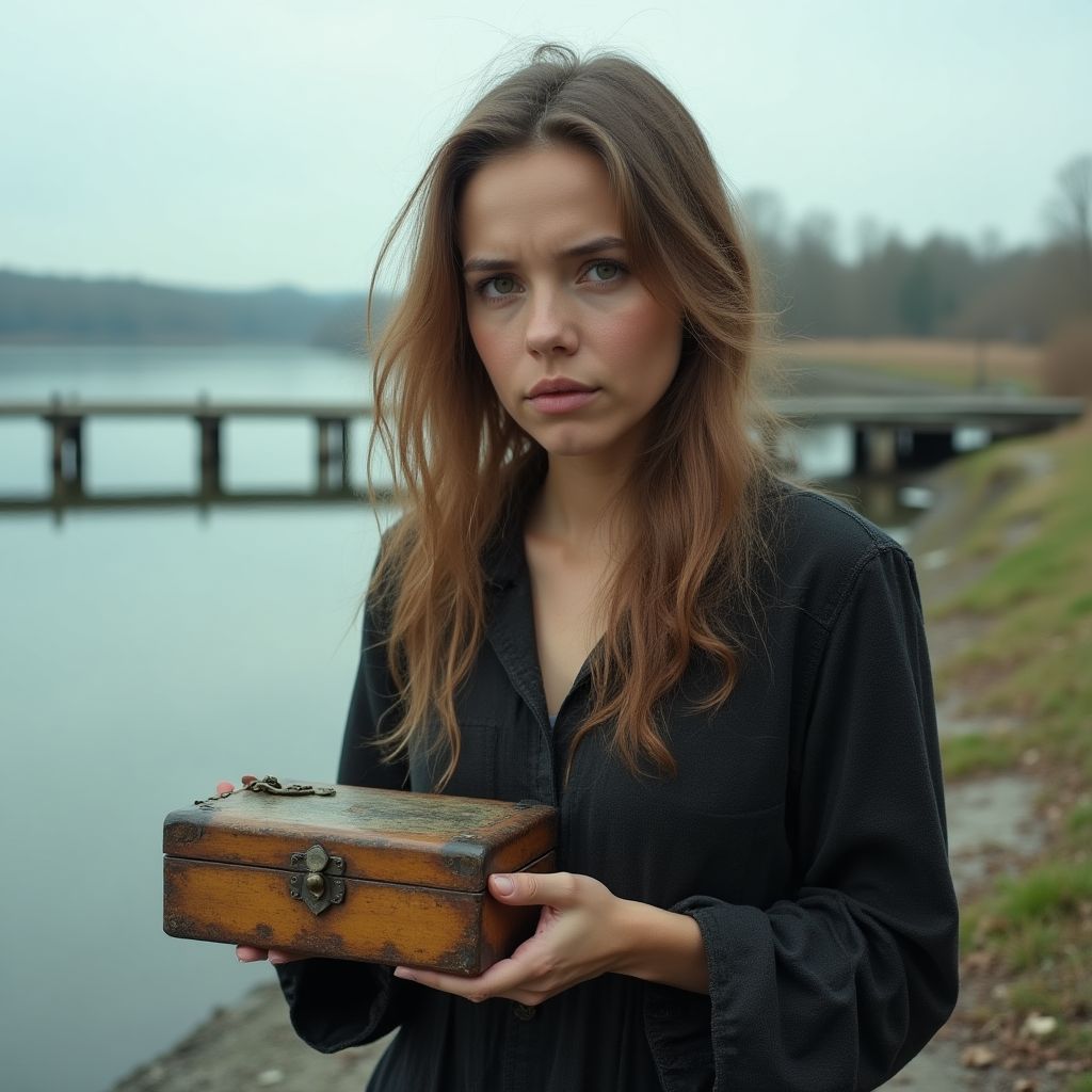 Рядом с причалом стоял Виктор — высокий мужчина средних лет с проницательными серыми глазами, подчеркивавшими его усталость. Его поношенный плащ и затертые ботинки говорили сами за себя — жизнь не баловала его, но гордая осанка не скрывала внутренней силы. Волосы седеющими прядями обрамляли лицо, иссечённое мелкими морщинами и холодным выражением. Он стоял, прижимая к груди старую шкатулку, словно боясь, что её можно потерять. Виктор — ветеран завода и одиночка, пришёл сюда на заброшенный причал не случайно.