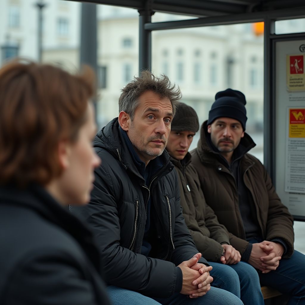Внутри мужчины боролись воспоминания и тревоги, глаза мелькали сомнениями — сегодня он пришёл сюда не просто так, не ради случайного ожидания автобуса или встречи. Интуитивно чувствуя необходимость поделиться историей, которую годы назад решил скрыть, он оглядывался вокруг: не найдёт ли слушателя, способного выслушать и понять. Его мысли крутились вокруг детства, которое казалось бессмысленно тёмным пятном на фоне блестящих витрин и светящихся экранов телефонов. Почему именно сейчас это воспоминание обострилось? Может, потому что каждый день здесь — на вокзале жизни — для него напоминание о том, что социальное неравенство и несправедливость — это не просто слова, а раны, которые не заживают.
