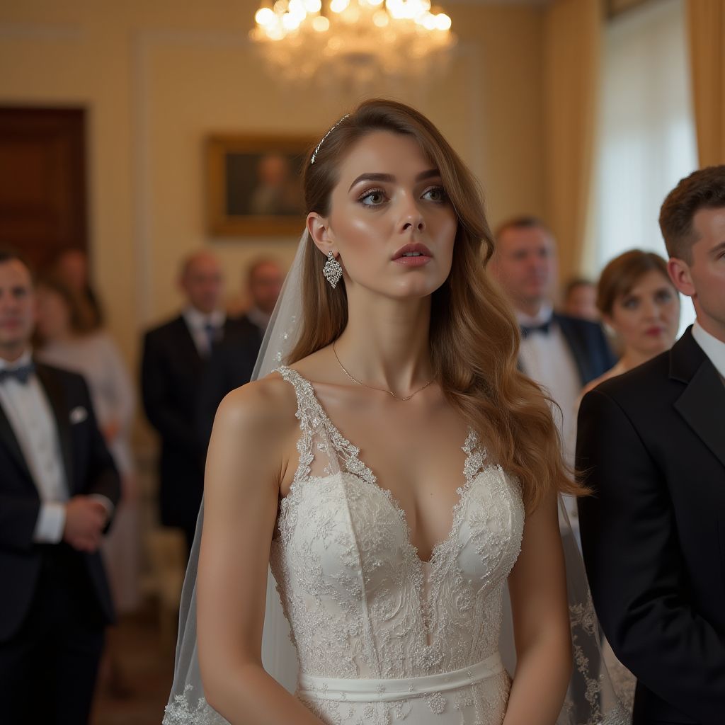 У той встречи была главная героиня — Светлана. Её стройная фигура в элегантном, но скромном белом платье оттенялась золотистыми волосами, аккуратно собранными в низкий пучок. Глаза цвета дождливого неба казались одновременно и нежными, и исполненными скрытой боли. Её тихая осанка и едва заметная дрожь в руках выдавали волнение, которое мало кто мог заметить, учитывая праздничный шум вокруг. Светлана была из рабочего посёлка, её одежда, хоть и безупречно чиста, по-прежнему выдаёт скромное происхождение — скромный шёлковый платок на шее, маленькое кольцо без драгоценных камней.