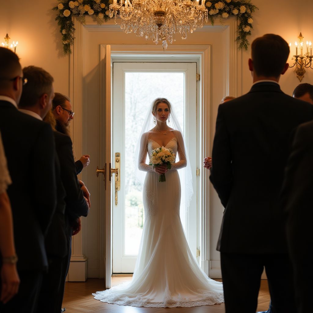 Мгновенно после её слов зал наполнился гулом, словно взрыв, которого никто не ожидал. Она оставалась стоять, не снимая взгляда с жениха, который онемел и опустил глаза в пол, не сумев встретить её взгляд. Её руки дрожали, будто охваченные внутренним вихрем чувств. Свет от люстры отражался в хрупких капельках слёз на её ресницах, медленно скатывающихся по щекам. Гости, замерев, словно вкопанные, обрушивали на неё смешанные взгляды — удивления, смятения, осуждения.