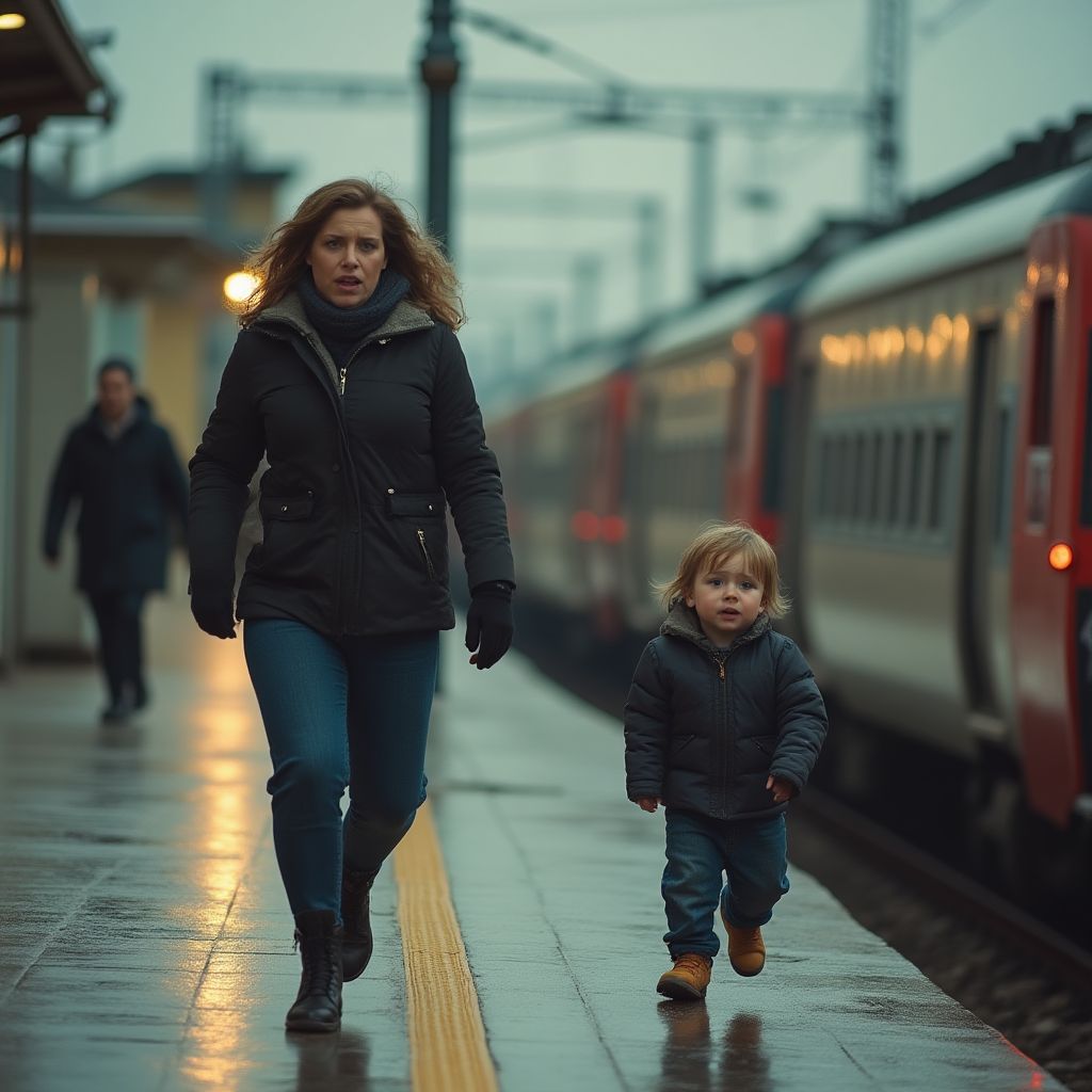 Мысли женщины метались, словно тяжёлый дождь во время грозы, затуманивая голову. Она вспоминала, как успела заплатить билеты, села в вагон с ребёнком на руках, а потом — как в суматохе и спешке вскочила на подножку последнего вагона. Сердце колотилось, перемешивая страх и отчаяние. Но теперь, глядя на отдаляющиеся дома и мерцающие огни, она поняла ужасное — ребёнка на платформе рядом нет. В уме мелькали миллионы вопросов: «Где он? Кто его забрал? Зачем я так отвлеклась?»