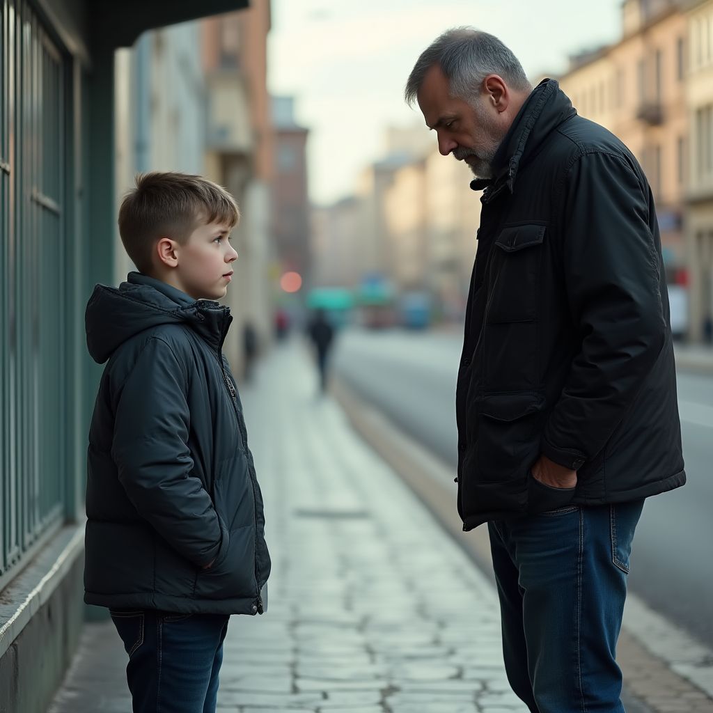 Внутри мальчика царило отчаяние и страх. Он ждал отца, которого уже не видел неделю. Сердце ребёнка билось учащённо, словно как барабан в унисон с шумом улицы, а мысли метались: «Где он? Почему никто не приходит?» Мир вокруг казался чуждым и холодным, словно и он один был забыт и выброшен в серую толпу прохожих.