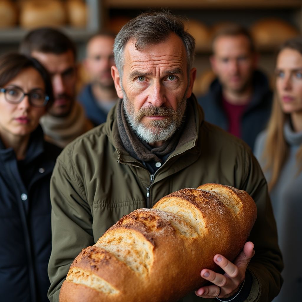 Момент задержался в воздухе — мужчина крепко сжимал в ладонях последний хлеб, глаза его сверкали решимостью и усталостью. Вокруг стояла напряжённая тишина, словно все присутствующие ждут, что произойдёт волшебство или раскрытие страшной тайны. Его дыхание стало прерывистым, сердце колотилось так громко, что казалось — его услышат все. Несколько секунд уходили в бесконечность. Мужчина повернулся лицом к толпе и с глубоким вздохом произнёс: «Этот хлеб — не просто товар. Он — шанс на жизнь, не для меня, а для моей дочери, которая скоро станет матерью. Я не прохожий, я — её отец, и это моя обязанность — обеспечить ей хоть что-то.»