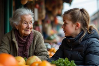 На осеннем автобусном остановке, вплотную к запылённому рынку, где каждый был занят своей суетой, воздух