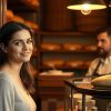 Лёгкий осенний ветер осторожно проникал в открытое окно кафе, играя с лоскутками одноразовых салфеток, разбросанных по столикам. Внутри царил уют: приглушённый свет ламп создавал мягкие тени на стенах, смешиваясь с ароматом свежеобжаренного кофе и только что испечённых круассанов. За окном прохожие спешили укрыться от редкого дождя, а внутри кафе звучал тихий разговор, перемежаемый стуком чашек и поскрипыванием старинного паркета. Казалось, здесь время медленно тянулось, даря каждому посетителю минуту отдыха от серых улиц большого города.