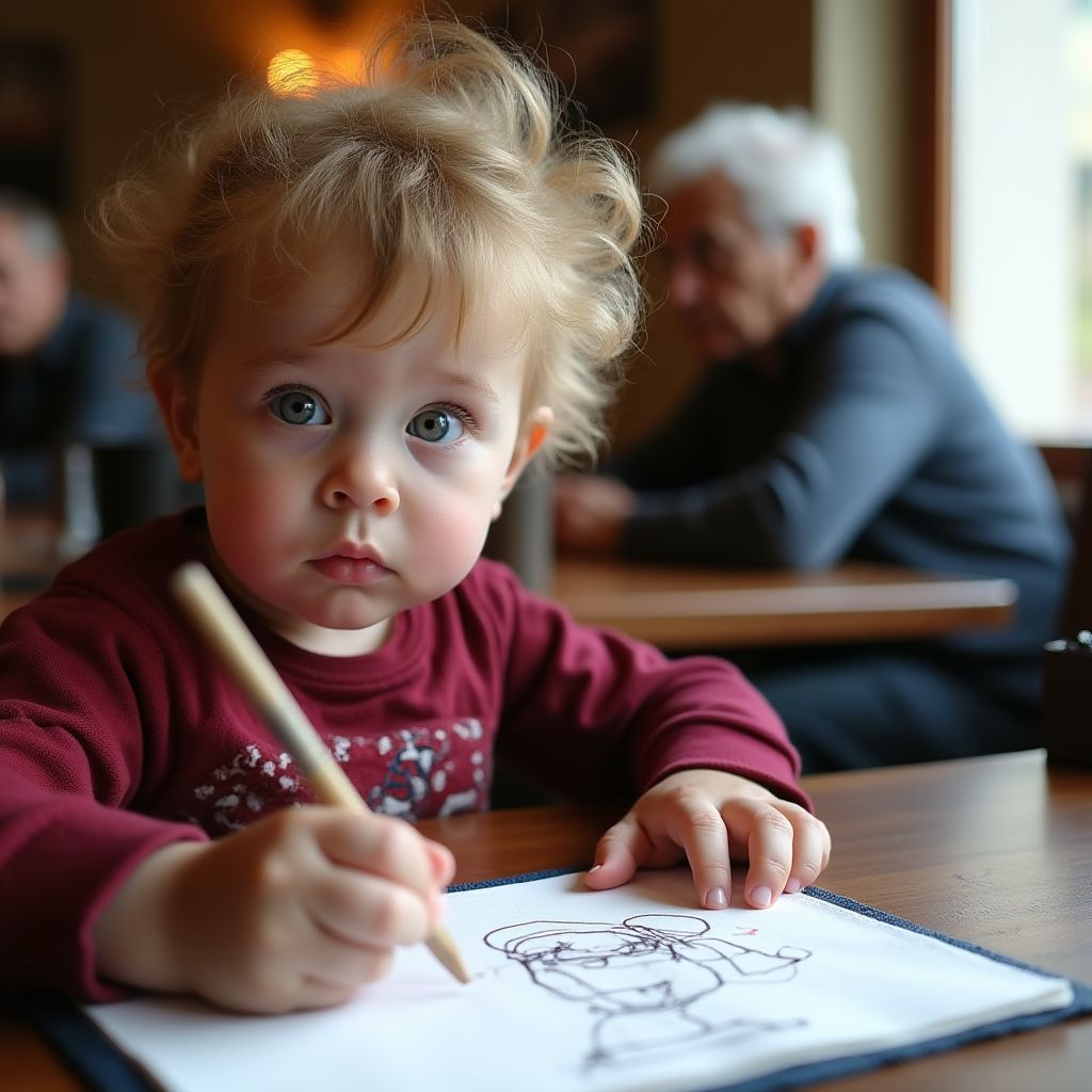 В этот момент к соседнему столику подошёл мужчина в дорогом пальто — его лицо выражало безразличие и лёгкое раздражение. «Может, ты уже перестанешь этим заниматься? Мы же здесь не на площадке», — сказал он насмешливо, глядя на ребёнка. Мама поспешно попыталась извиниться, нервно перебирая пальцами сумку. «Я просто рисую, я не мешаю», — прошептал мальчик, но взгляд мужчины стал холоднее. «Так тебе и скажи — прекрати, пока не случится беда», — добавил он, уходя к барной стойке. Воздух вокруг будто подался напряжённее, прохожие украдкой бросали взгляды в их сторону, слышались шёпоты и смешки. Мальчик же всё более сжимал салфетки в руках, у сердца забилось сильнее — смущение и страх постепенно смешивались с тихой решимостью.