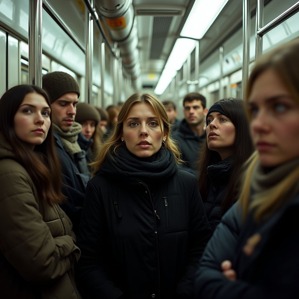 Прохладный зимний вечер медленно окутывал город. В последние часы рабочего дня стеклянные окна вагона метро отражали тусклый свет уличных фонарей, смешиваясь с мерцанием рекламных вывесок под землёй. В воздухе висел запах влажного асфальта и холодного ветра, который с улицы пробирался через открытые двери подземки, заставляя пассажиров туго зажимать куртки и шарфы. Тяжёлая усталость и обыденность проникали в каждую частичку вагонного пространства, создавая будто паутину из неловких взглядов и приглушённого шума колёс по рельсам. Казалось, никто не обращал внимания на то, что происходило вокруг, пока мягкий, почти неслышный шёпот не пронёсся в последнем вагоне, заставив головы медленно повернуться.