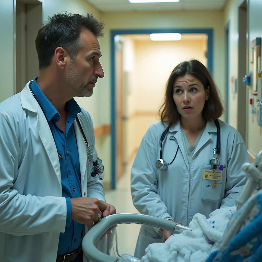 Медсестры, заметив возбуждённого врача, начали переглядываться и тихо перешёптываться: «Почему именно эта семья?», «Да разве может такое быть?», «Пусть полиция разберётся» — звучали шёпоты с оттенком страха и осуждения. Один из младших врачей прошептал: «Если правда всплывёт, это будет шок». А ещё одна медсестра шёпотом добавила: «Такое не должно было случиться под нашим присмотром». Врачу казалось, что каждый взгляд был колючим, а атмосфера пропитана обвинениями.