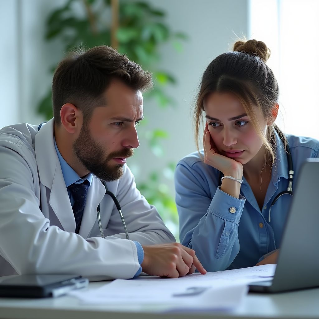 Сердце Сергея билось так громко, что казалось, его слышат все в маленьком кабинете поликлиники. Он не мог оторвать взгляда от бланка — там, в графе с диагнозом, стояла ошибка, которую должен был заметить каждый врач, но она почему-то прошла все проверки. «Это невозможно», — повторил он, стараясь поверить своим глазам. Его руки дрожали, словно мелкие осенние листья под ветром, дыхание участилось, а время вокруг замедлилось до мучительного ожидания.