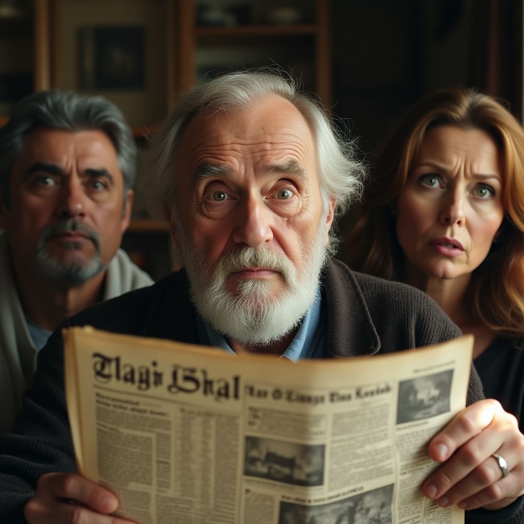 Пётр чувствовал, как его руки дрожат всё сильнее, а сердце бешено колотится в груди. Его дыхание стало прерывистым, словно холодный ветер проникал прямо в душу. Он знал, что эта газета — ключ к тайне, которая мучила его всю жизнь, но собравшиеся вокруг смотрели на него по-разному: от тревожного любопытства до явного неприятия. «Что если правда будет слишком горькой?» — мелькнула в его голове мысль.