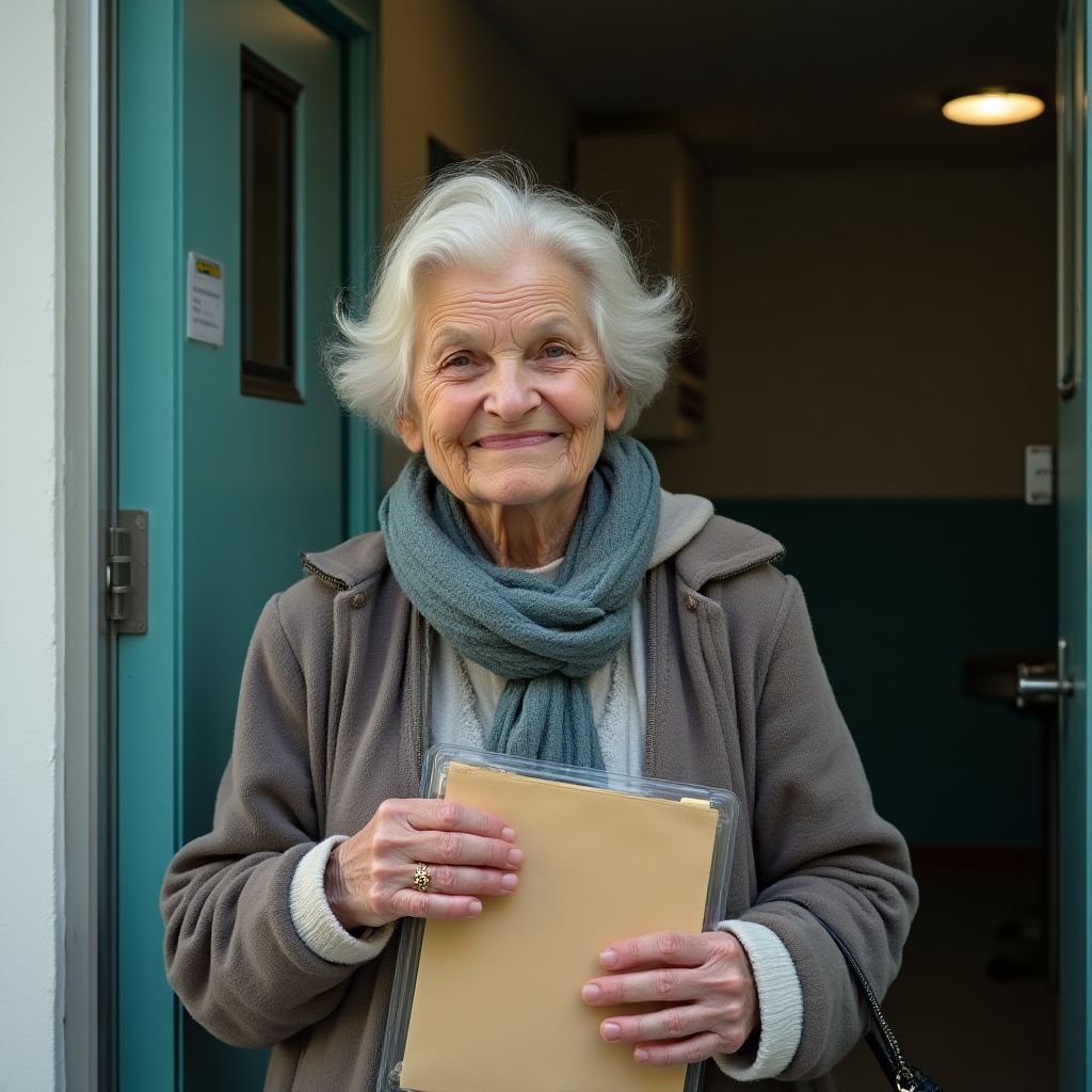 Облик старушки выглядел с первого взгляда тихим и неприметным: худощавое, чуть согнутое тело в старом, но аккуратном тёмно-синем пальто, сквозь которое проглядывал изношенный платок. Её глаза — светло-зелёные, с лёгкой усталостью — скрывали глубокую историю. Прямо сейчас она чувствовала необычайную лёгкость, словно тяжелая ноша с плеч вдруг была сброшена. Её не слишком ухоженные, но чистые руки слегка дрожали, когда она поправляла очки на переносице. Всё в ней говорило о победе над недугом и о том, что несмотря на простой внешний вид, перед вами человек с огромным внутренним миром и силой, которую мало кто ожидал увидеть.