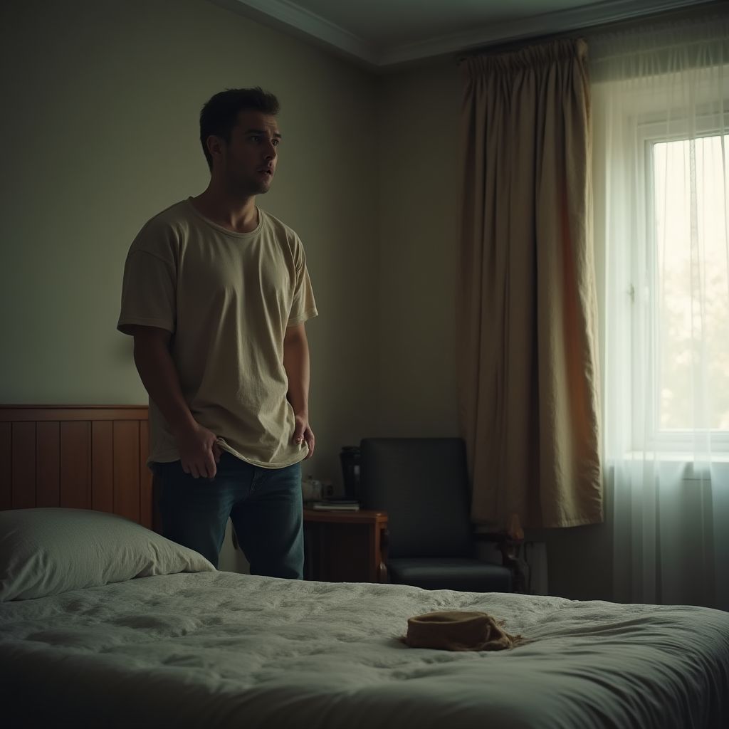 Сергей медленно наклонился над кроватью, пальцы его дрожали, готовясь прикоснуться к незнакомой вещи. Комната наполнилась глухим стуком его сердца, казалось, время застыло на месте. Свет утреннего солнца проникал сквозь занавески, рисуя на полу длинные тени. Вокруг стояла тишина, нарушаемая лишь слабым шумом отдаленного городского шума.