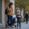 Анна стояла у самой горки, ее взгляд был усталым, но в то же время настороженным. Девочка в ярко-желтой куртке, её дочь, беззаботно каталась на качелях, смеясь в красках весеннего утра. Тонкое пальто на Анне казалось слишком скромным для прохладной погоды, на ногах — износившиеся кеды, не подходящие для городских прогулок. Взгляд Анны мелькал между дочерью и остальной площадкой — она была одинокой молодой матерью, каждый день борющейся с суровой жизнью большого города. Её глаза, глубокие и немного заплаканные, словно хранили много тайных историй.