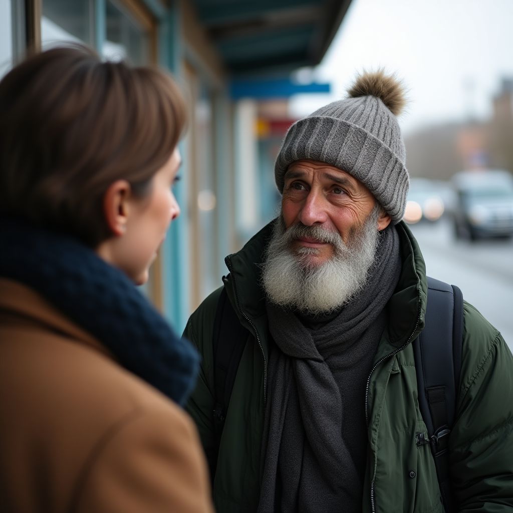 Вскоре неравенство и обесценивание сменились пониманием и поддержкой. Прохожие начали склонять головы в знак уважения к этой живой драме. Они обсуждали возможность помочь мужчине: устроить жильё, восстановить документы, найти работу. «Мы должны исправить несправедливость,» — сказал один из прохожих, мужчина средних лет, пожав плечами с решимостью.