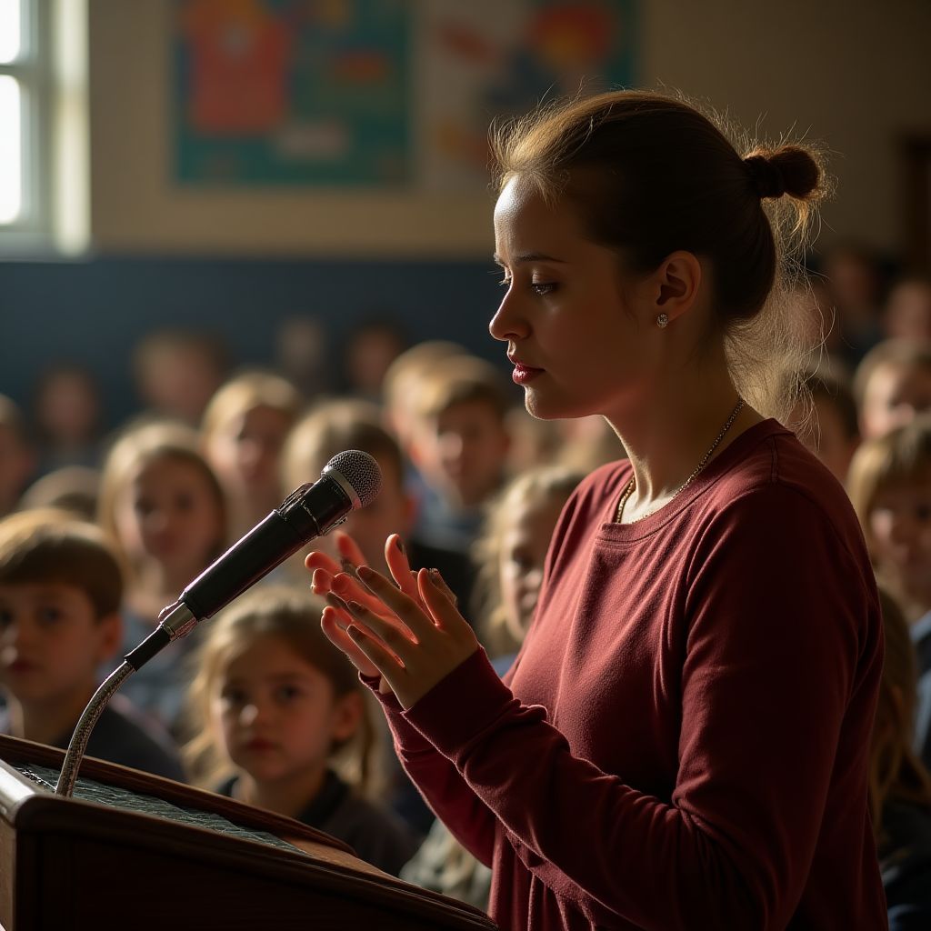 Перед началом праздника она вытащила из сумки небольшой конверт и тихо сказала: «Это нужно всем увидеть.» Взгляды учителей и родителей стали напряжёнными, а в зале появился лёгкий, почти неслышный шёпот.