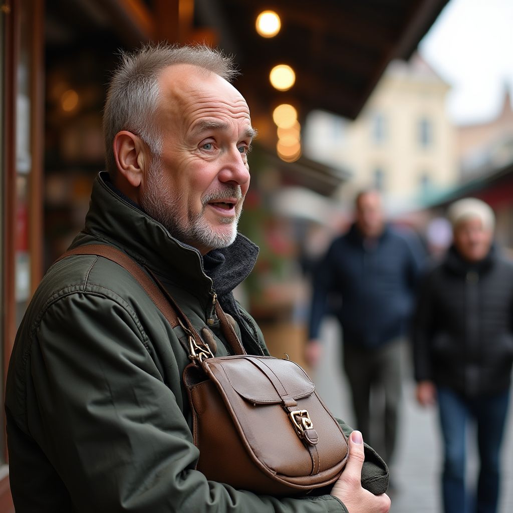 Сердце у него внезапно застучало быстрее. Он подошёл ближе и заметил на витрине то, что не верил своим глазам — знакомая сумка, которую давно потеряла его дочь. Тонкая кожа потрескалась, но форма была узнаваема. Его пальцы непроизвольно потянулись к ней; сердце будто замерло на мгновение, потекли мурашки по коже.