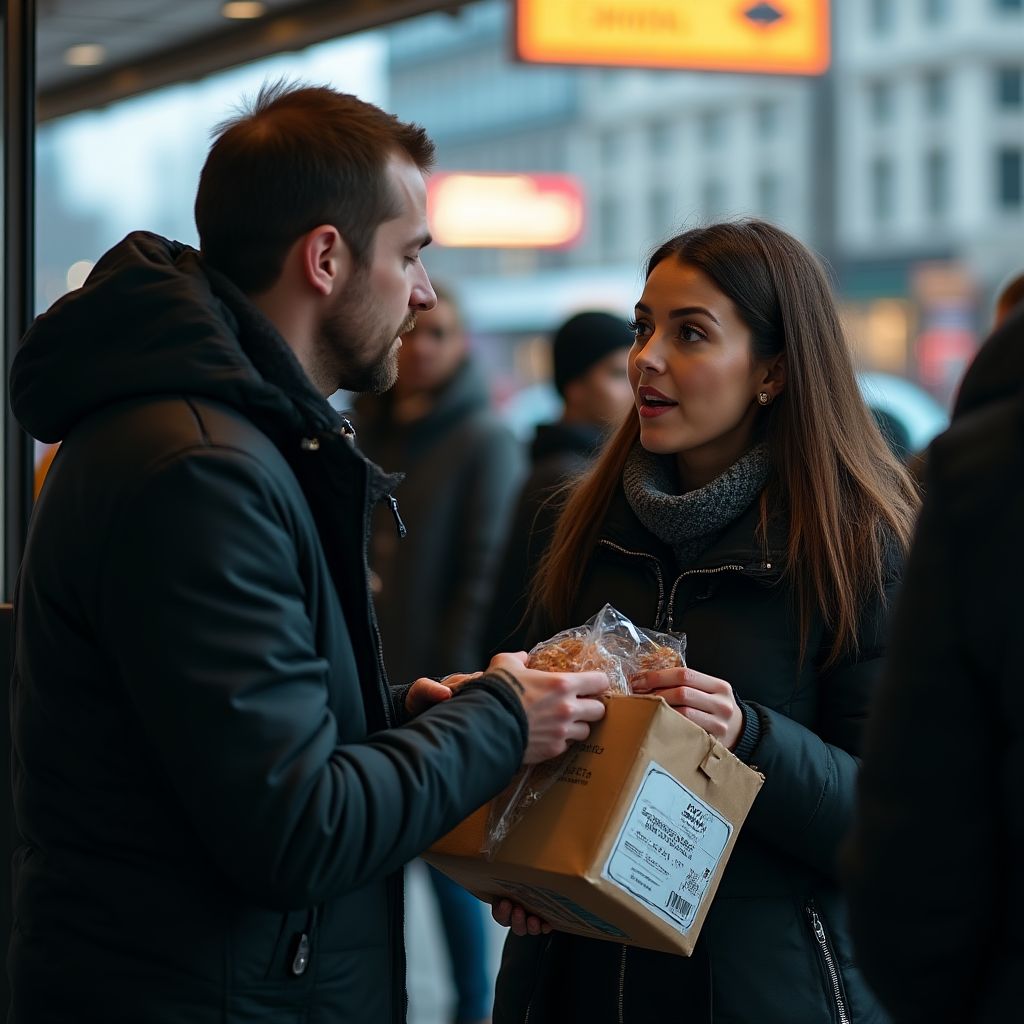 Сердце мужчины забилось быстрее, когда он увидел, как из толпы к остановке подошла женщина. Она была измождённой, с тонкими кудрявыми волосами и испуганным взглядом, одетая в старую куртку, что едва спасала её от весеннего холода. Вокруг неё прошептались прохожие: «Посмотрите, это же та самая, о которой все говорят…» Мужчина сделал глубокий вдох и протянул ей пакет с едва заметной надписью. Её глаза расширились от удивления и облегчения, губы дрогнули, но прежде чем она успела что-то сказать, он растворился в ночной толпе, оставив после себя воздух, наполненный тайной.