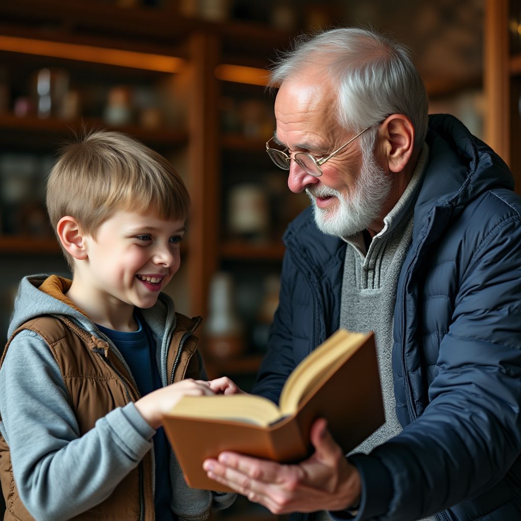 Он стоял у прилавка, обхватив книгу, которую ему со странной теплотой протянул старик-продавец с морщинистым лицом и заботливым взглядом. «Эта история спасёт тебя, поверь мне», — тихо сказал он. Мальчик ощутил странное тепло в грудь, словно с его плечи упала невидимая тяжесть. Что же было в этой книге, и почему старик был так уверен? В голове крутилось множество мыслей — надежда, страх, недоверие и желание понять.