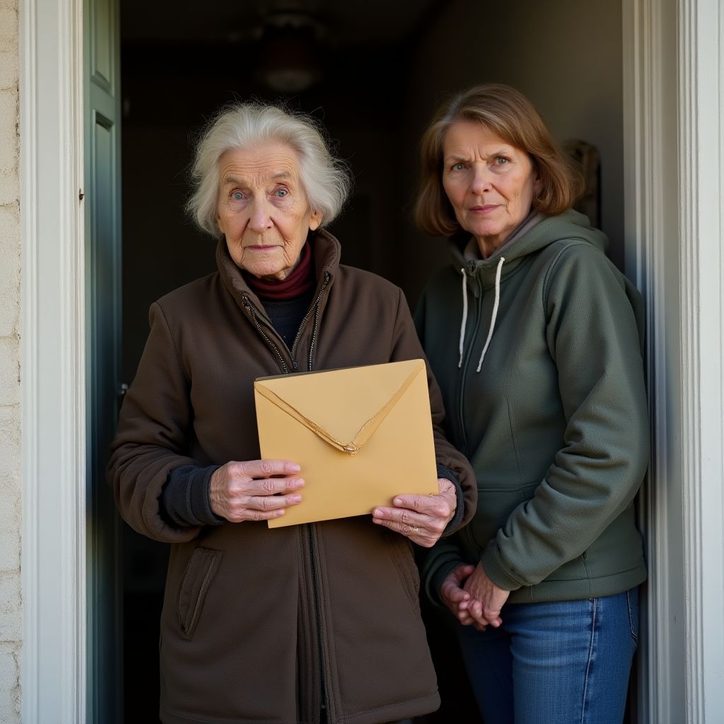 «Это конверт… кто-то оставил его у двери бабушки», — ответила Марина, осторожно держа в руках желтоватый бумажный конверт, потрёпанный дождём и временем.