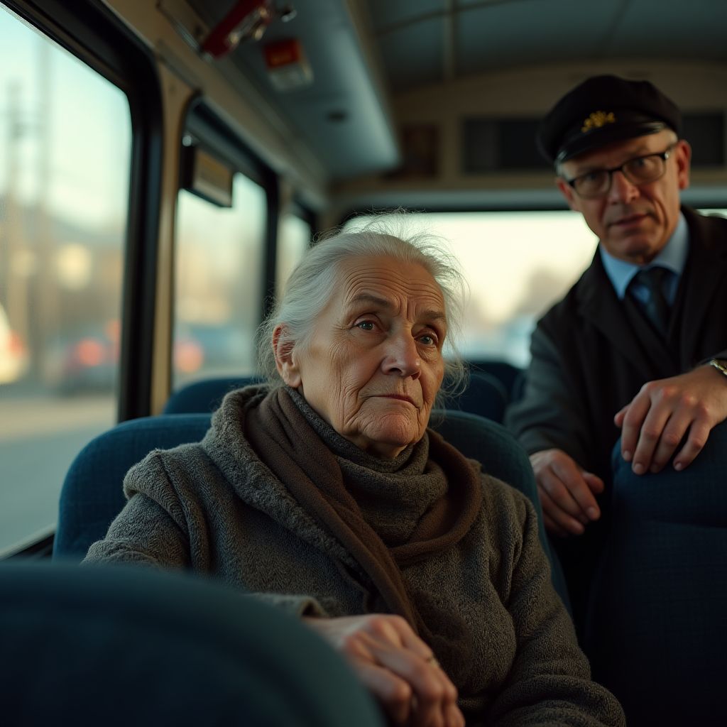 Когда водитель крепко удержал руку Марии Петровны, всё в автобусе словно замерло. Его жёсткий взгляд столкнулся с её усталыми глазами, полными непроизнесённых слов. Секунды тянулись, превращаясь в вечность, и казалось, что воздух будто превратился в густой, словно свинцовый, туман. «Ты всё ещё не поняла?» — хрипло произнёс он, и голос его прозвучал совсем иначе — теперь уже не как грубость, а как горькая правда, яку никто не хотел слышать.
