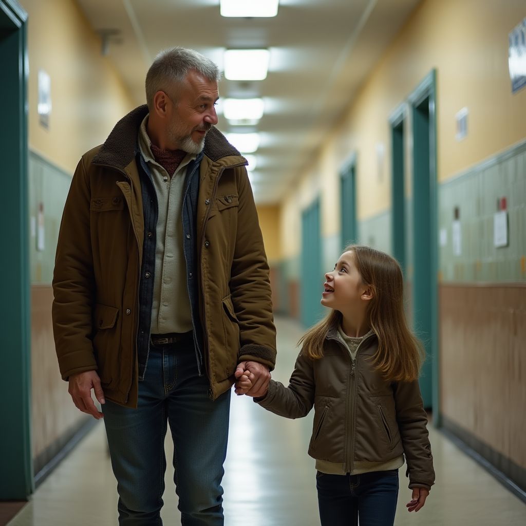 Как только он приблизился к дочери, всё в школе словно замерло. Шёпоты умолкли, взгляды смешались с ожиданием. Вот-вот всё откроется…